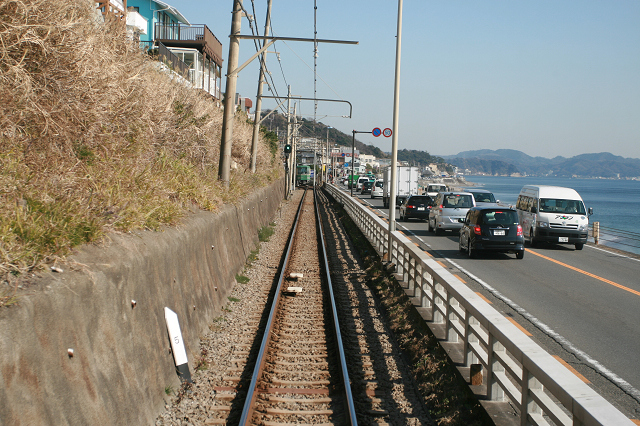 湘南海岸,或許喜歡日劇或是日本漫畫的人並不陌生,東京人經常在夏天來到這地方戲水,也因為是著名的海灘景點,所以廣告或是日劇取景也經常在這裡進行;而我,雖說是慕名而來,但也只是抱著好奇的心情在這裡下車。事實上在江之電沿線並沒有一個站稱之為『湘南海岸』,但是不用擔心找不到,因為電車行駛在半途中就會經過海岸線,當看到海邊的美麗風景時,也就是告訴你該下車了。