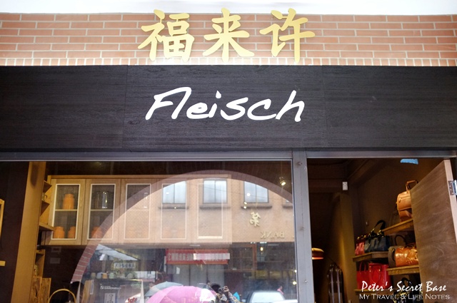 店名的Flieisch,原本是德文【肉】的意思,據說是因為主廚STALU沈伯翰先生很喜歡肉食的緣故,所以才起了這個名兒(說真的聽到這裡,我腦袋裡想到的是魯夫XD)。至於音譯的店名福來許,以華人的角度來看也頗喜氣,尤其店開在這條老街上,而且馬上就要過年了,還真是個相輔相成的點題。福來許在一整幢翻修過的老屋裡,一二樓是料理場與咖啡餐飲空間,三樓為私人招待會所,四樓為工作室;我想這裡應該可以定位為複合式的文創餐飲空間。