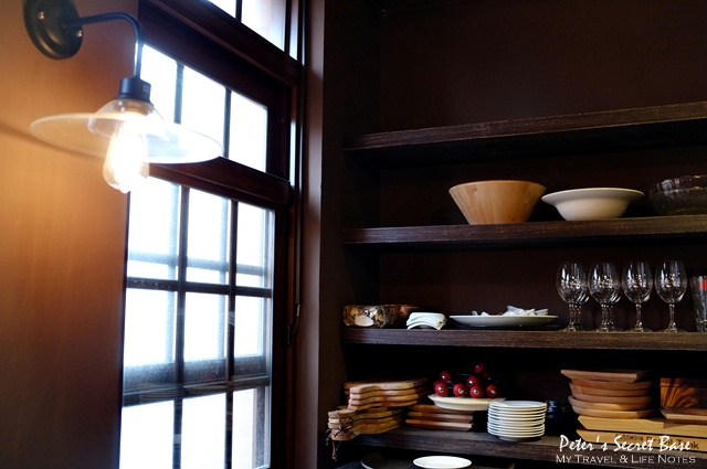 三樓的另一個空間是歐式廚房暨招待會所。甫一上樓,在樓梯間前透過那縷空的窗櫺看到這一幕,挺讓人激動。