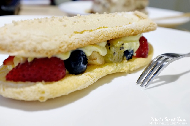 福來許的甜點也十分深得我心,從試營運至今三次的造訪,每回注文的甜點都讓我得到充實的甜食幸福感,而甜點師傅竟是一位年輕的妹妹,也讓已晉身大叔的我著實訝異。上圖為滿佈著堅果的小鬆糕,是香氣十足,口感綿密的一品。